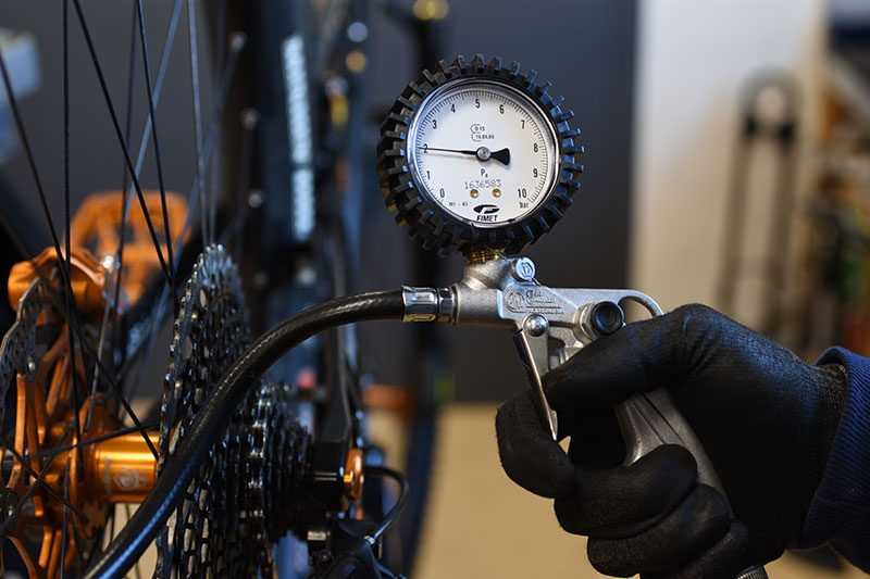 Pour vérifier la pression de vos pneus de manière précise, utilisez une pompe à pied équipée d’un manomètre (indication des mesures métriques Bar et PSI). Référez-vous aux informations données par les constructeurs. Elles sont généralement indiquées sur le flanc du pneu. Lors du gonflage, respectez bien les données sans les dépasser.
